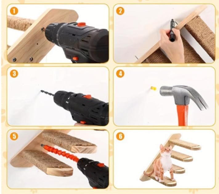 Настенная кошачья лестница, каучуковое дерево с пеньковой веревкой и нескользящей подкладкой, простая установка, игровая зона для кошек, оригинальный продукт, компактная, кошачий мостик