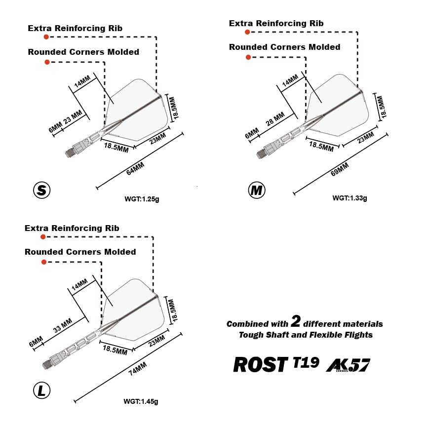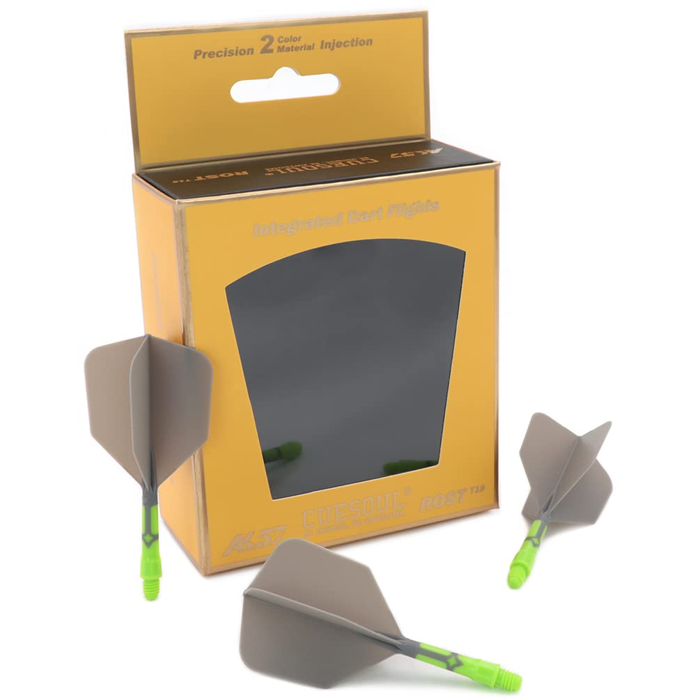 CUESOUL ROST T19 Shaft-Integrated Flight, Big Wing Shape, Two-Tone Color, S, Gray Flight + Light Green Shaft, Set of 3 (CS-AK5711-3S)