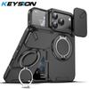 KEYSION Чехол для телефона с вращающимся на 360° кольцом-подставкой для iPhone 17 Pro Max Силикон+ПК Слайдерная защита камеры Магнитный ударопрочный чехол — купить товар онлайн с бесплатной доставкой по всему миру!
