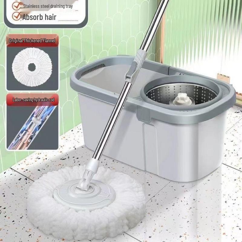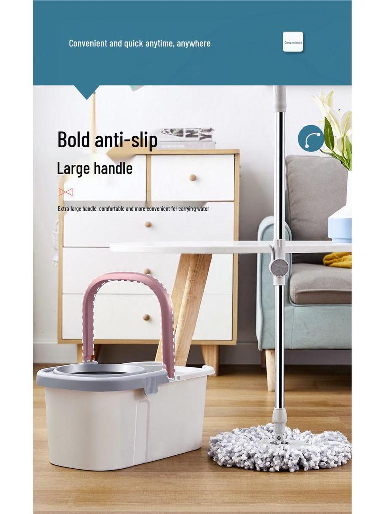Улучшенная швабра с отжимом двойного назначения с плоским ведром для отжима без рук для сухой и влажной уборки