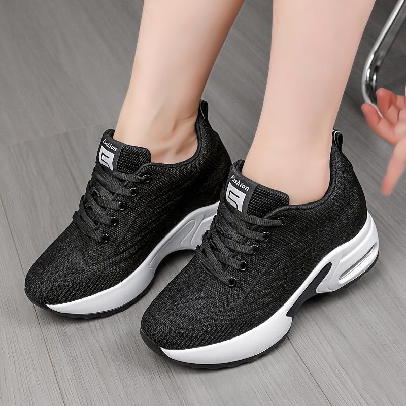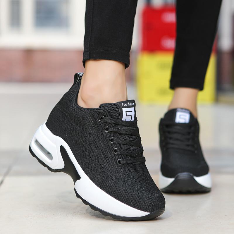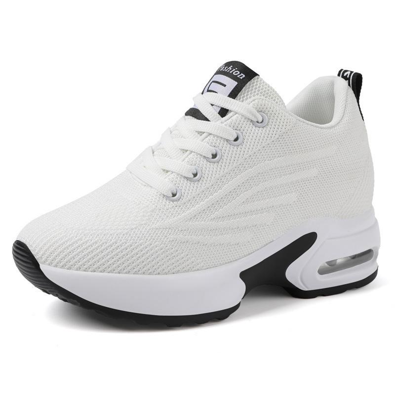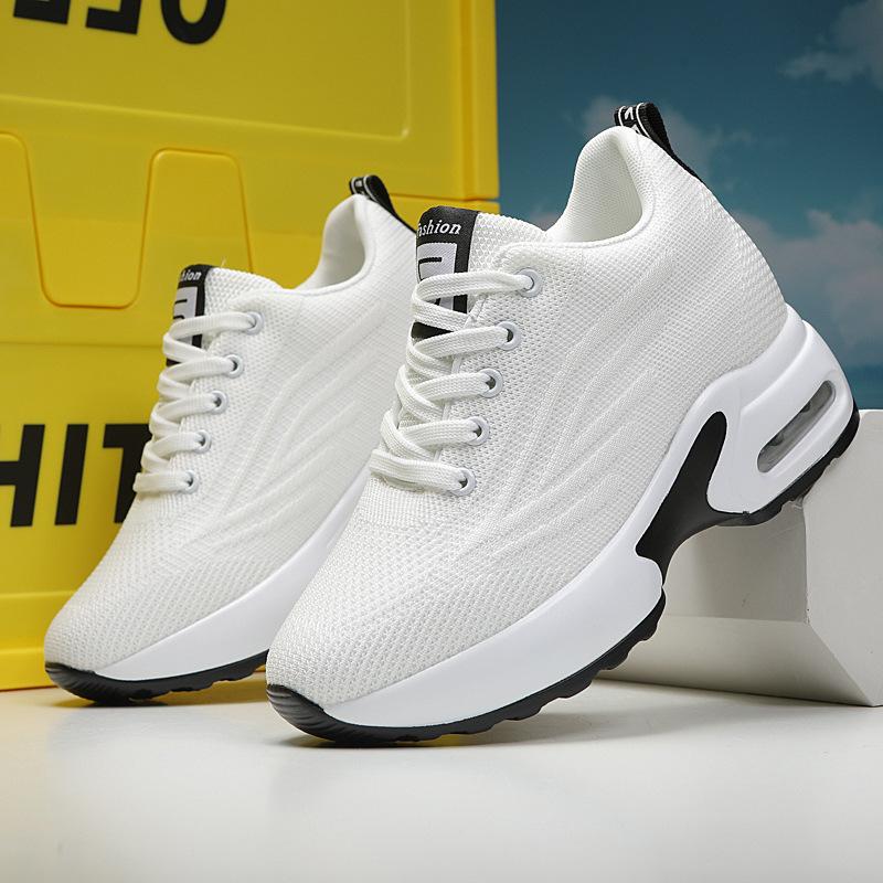 2025 весна новая сетка дышащая невидимая внутренняя увеличение высоты женская обувь повседневная платформа спортивная обувь женские туфли лодочки белые