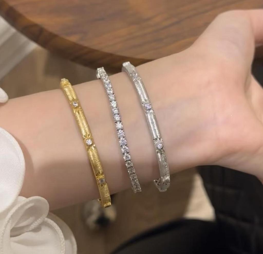 Изысканный браслет с десятью бриллиантами, матовый, ручная работа, матовая полировка, микроинкрустация. Материал: Унисекс. Для повседневной носки, на день рождения.