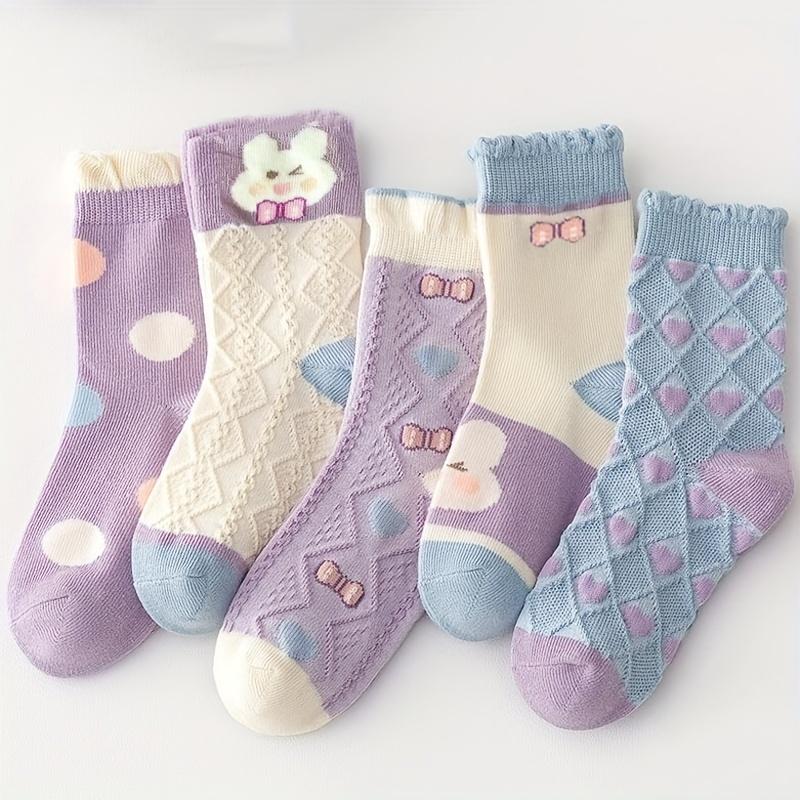 5 пар носков с милым кроликом для девочек, дышащие прочные вязаные носки с модным дизайном в горошек