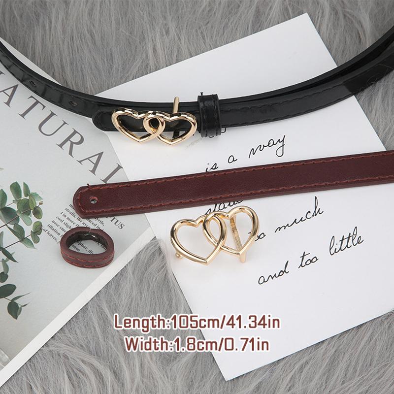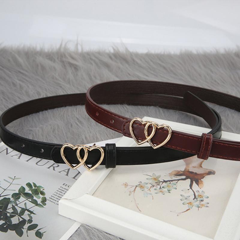 Тонкий ремень с двойной пряжкой в форме сердца, простой женский ремень для джинсов и костюмов, длинной рубашки, декоративный женский ремень
