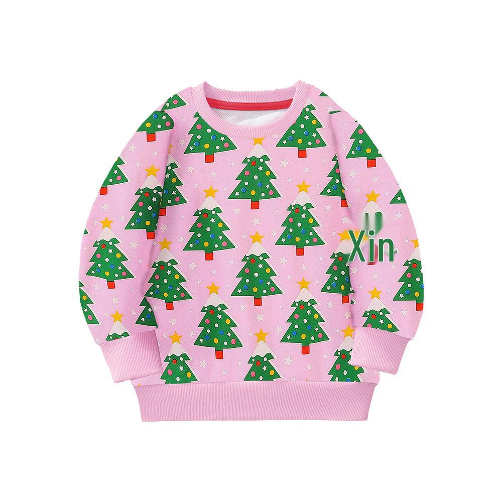Европейская и американская детская толстовка с принтом рождественской елки - с длинным рукавом, осенне-зимний мультяшный дизайн
