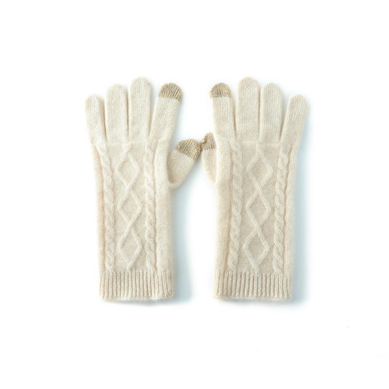 Touch Screen Gloves Cashmere Autumn and Winter New Style Unisex Twisted Pattern Warm Cycling Windproof Knitted Five Finger