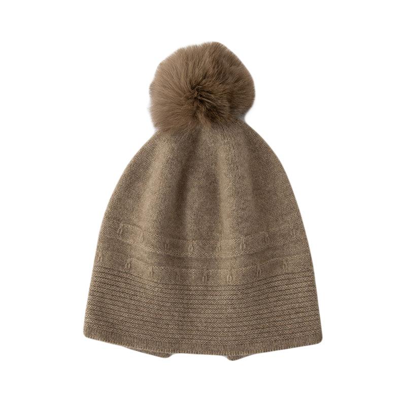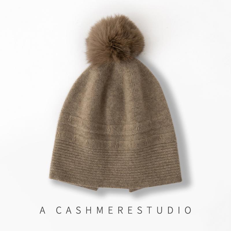 Кашемировая осенне-зимняя новая модель женская высококлассная однотонная полосатая с меховым помпоном утолщенная теплая модная вязаная повседневная шапка