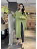 Женское трикотажное платье-свитер средней длины: Ленивый стиль, Круглый вырез, Свободный крой, Боковой разрез, Длина ниже колена, Осень/Зима