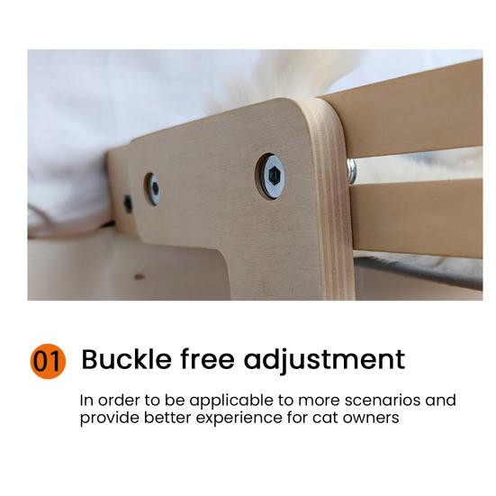 Простая установка, регулируемая конструкция: Установите наш кошачий гамак без усилий, без инструментов и повреждения стен.. Деревянная подставка регулируется по размеру, чтобы подходить для окон разной ширины и прикроватных тумбочек разной высоты, обеспечивая безопасное место для отдыха вашего кошачьего друга.
