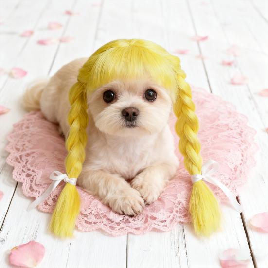 Парик для косплея питомца Милые собаки Двойные косички с бантами Регулируемая эластичная лента Кошачий парик для Хэллоуина Рождественских вечеринок Фото