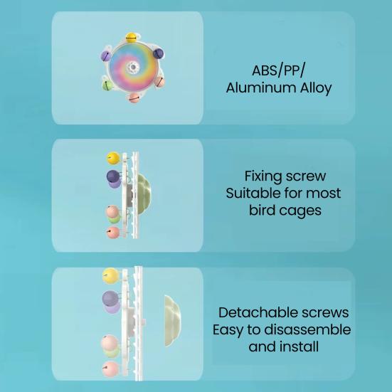 Быстрая сборка и низкие эксплуатационные расходы: Наслаждайтесь простой установкой благодаря функции быстрой и стабильной сборки этой игрушки. Его гигиеничная конструкция позволяет легко чистить, обеспечивая минимальный уход, который идеально вписывается в вашу клетку для птиц для расслабляющего игрового времени.