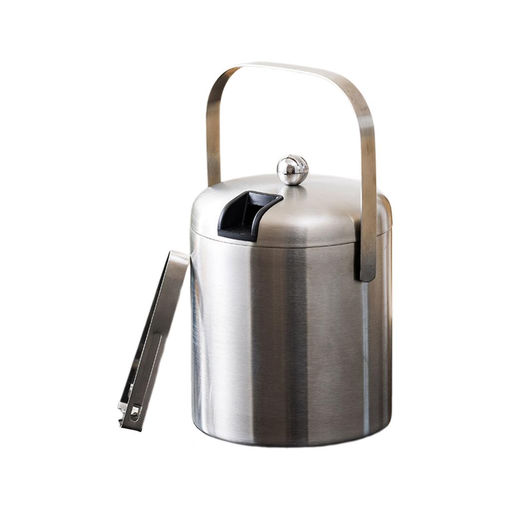 Ведро для льда из нержавеющей стали с щипцами, крышкой и входящим в комплект ситом, изолированное ведро для льда, удобный изолированный контейнер