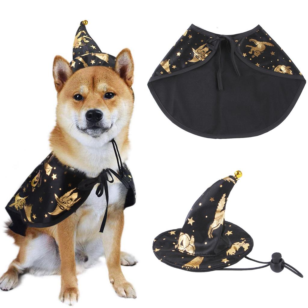 Костюм для питомца Шляпа Забавный плащ ведьмы с принтом звезд Вечеринка Косплей Платье Косплей Аксессуары Принадлежности для Хэллоуина для питомца