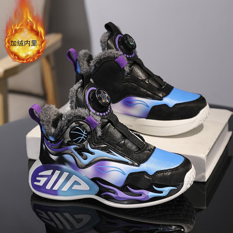 Фабричные зимние детские хлопковые ботинки модные универсальные спортивные ботинки теплые уличные нескользящие бархатные кожаные баскетбольные кроссовки