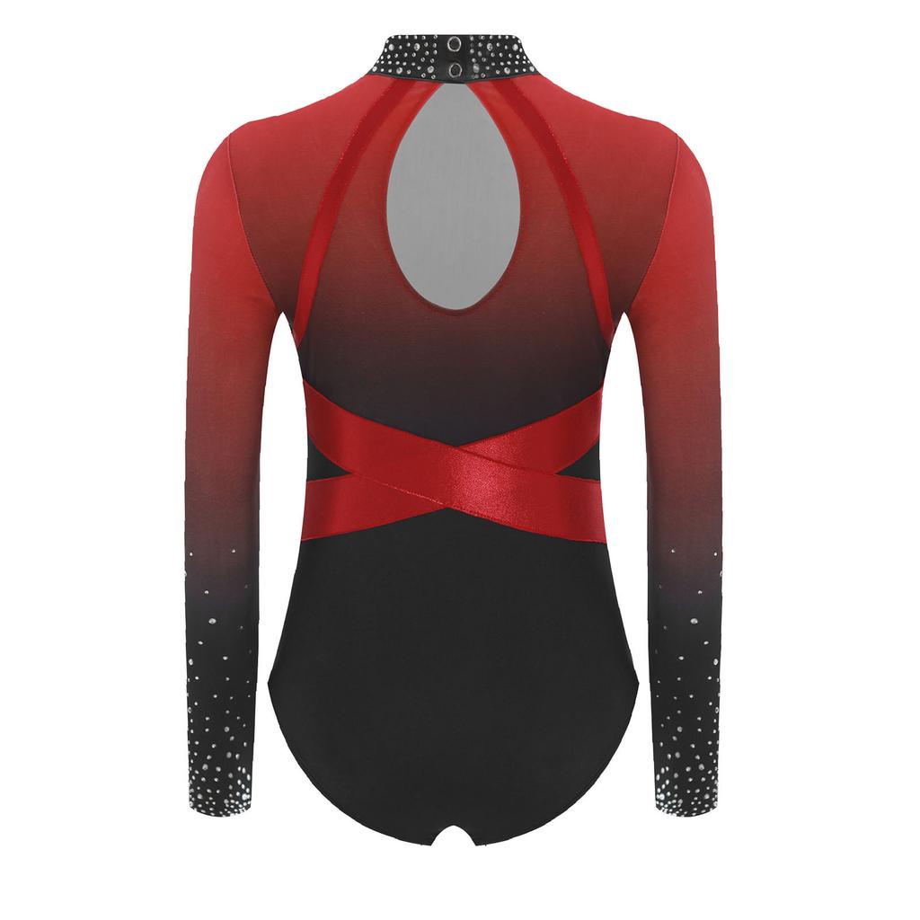 Детский гимнастический купальник в стиле колор-блок, с блестящими стразами, с длинным рукавом, костюм для балета и танцев