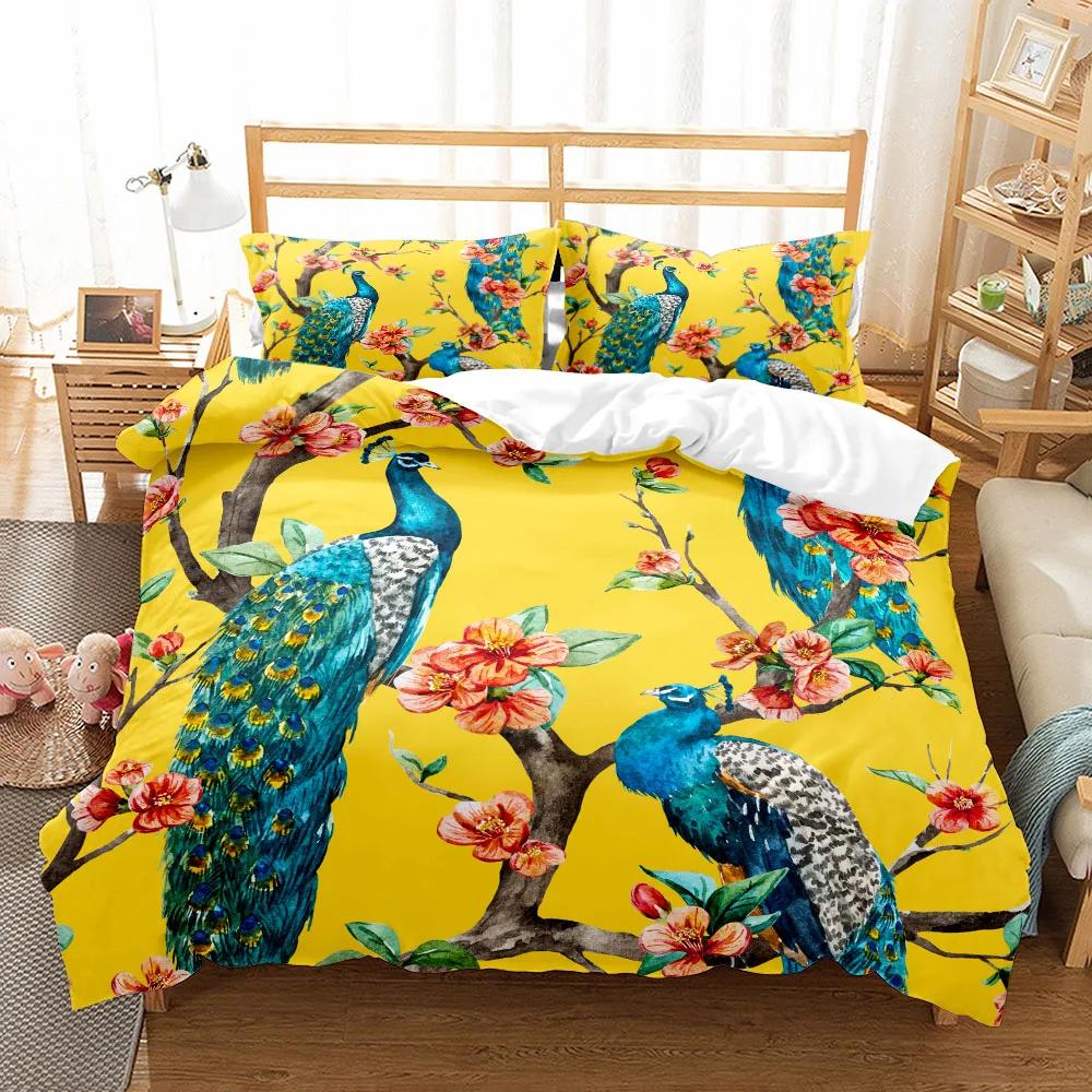 3 шт. Изящный павлин Арт 3D Постельное белье Односпальный Полуторный Двуспальный Квинсайз Кингсайз Суперкингсайз Комплект постельного белья Стиранный хлопок Пододеяльник — купить товар онлайн с бесплатной доставкой по всему миру!