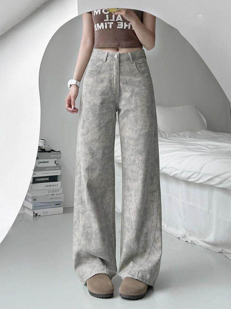 Летние джинсы широкого кроя женские тонкие с принтом тай-дай нишевого дизайна свободные прямые брюки ретро уличный стиль мешковатые длинные джинсы для леди