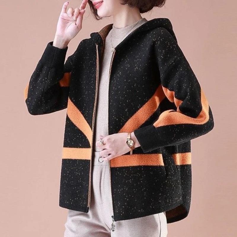 Женский трикотажный топ с капюшоном на молнии, нового стиля, модный, омолаживающий, двусторонний шерстяной жакет