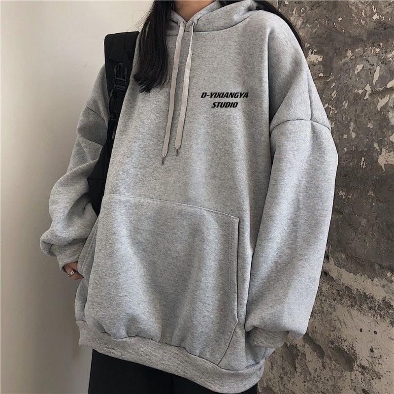 Толстовка с капюшоном для женщин плюс бархат осень зима новая оверсайз с длинным рукавом корейская свободная куртка трендовая