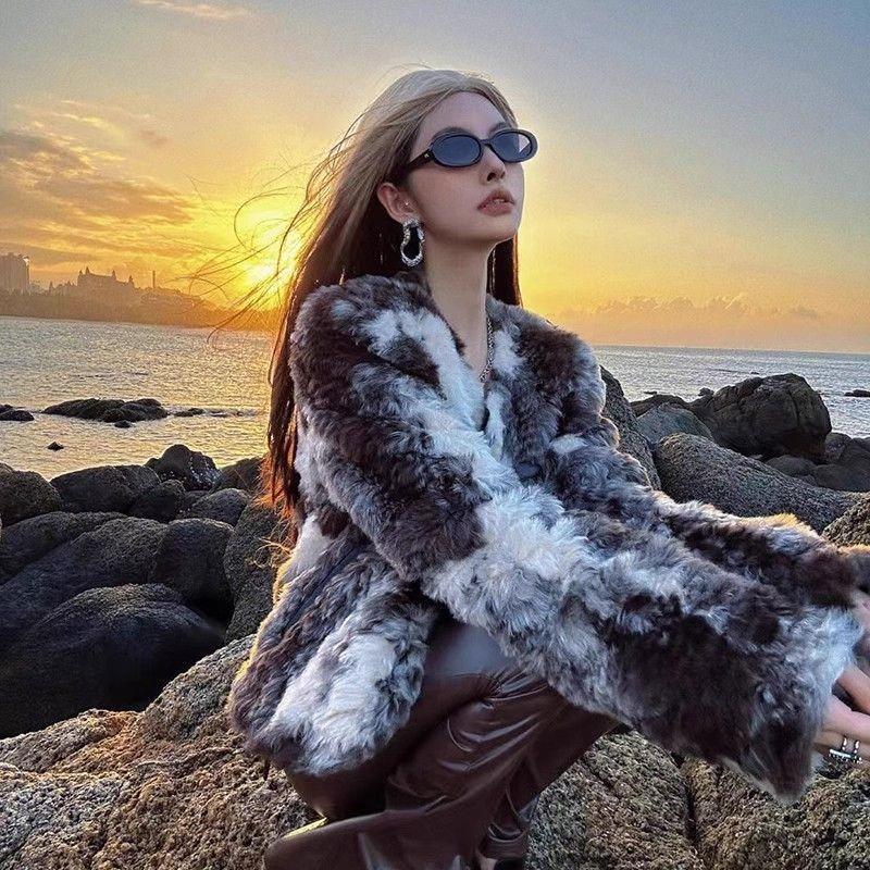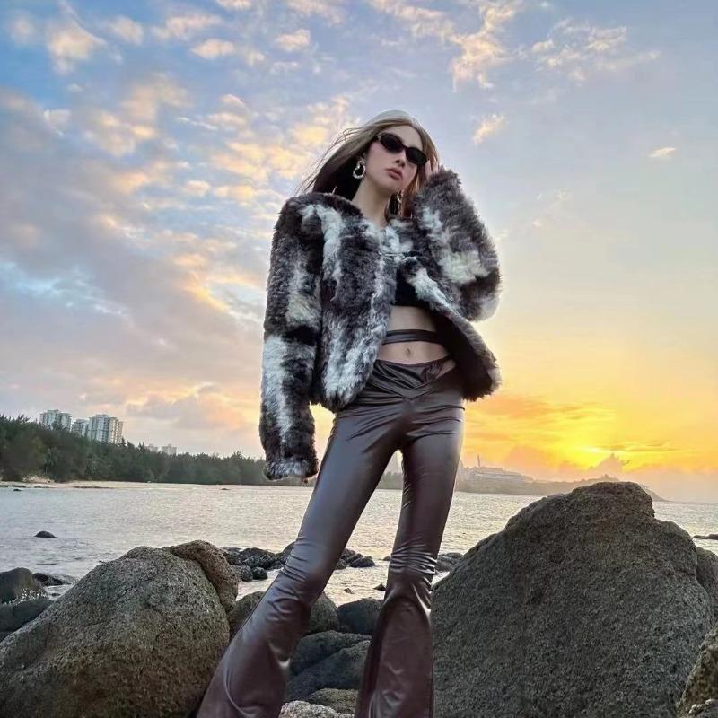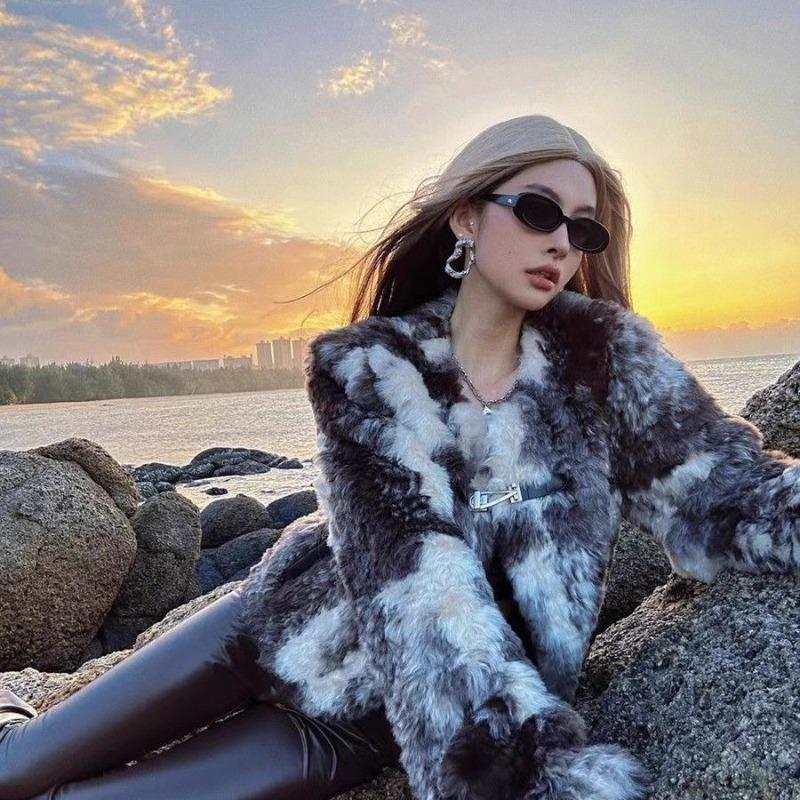 Черно-белое пальто из овечьей шерсти с брызгами краски, женское, с чувством дизайна, имитация лисьего меха, короткий мех, мех, осень и зима, новое