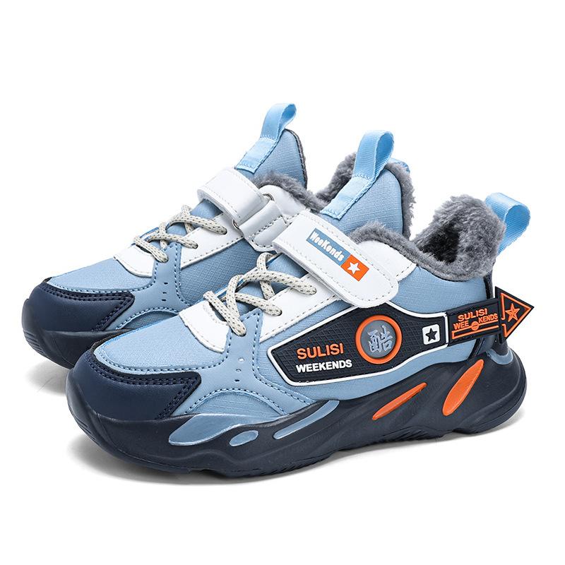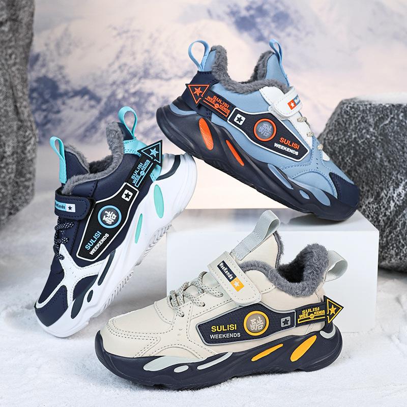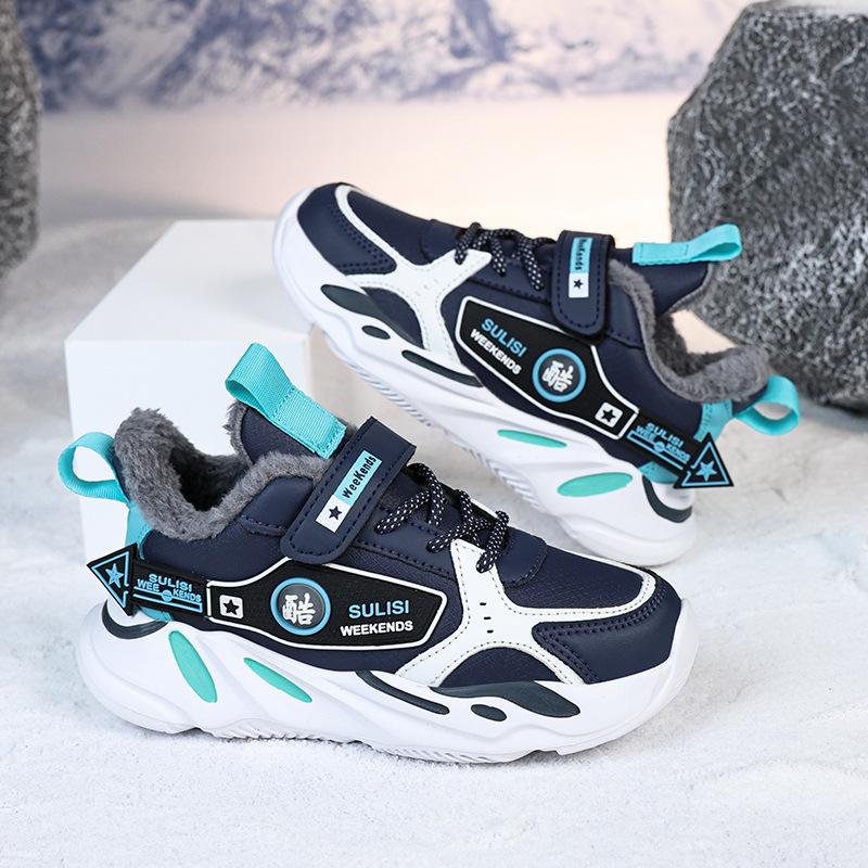 Детская большая хлопковая спортивная обувь зима новая обувь из хлопка с бархатной подкладкой для мальчиков холодная и теплая кожаная повседневная обувь