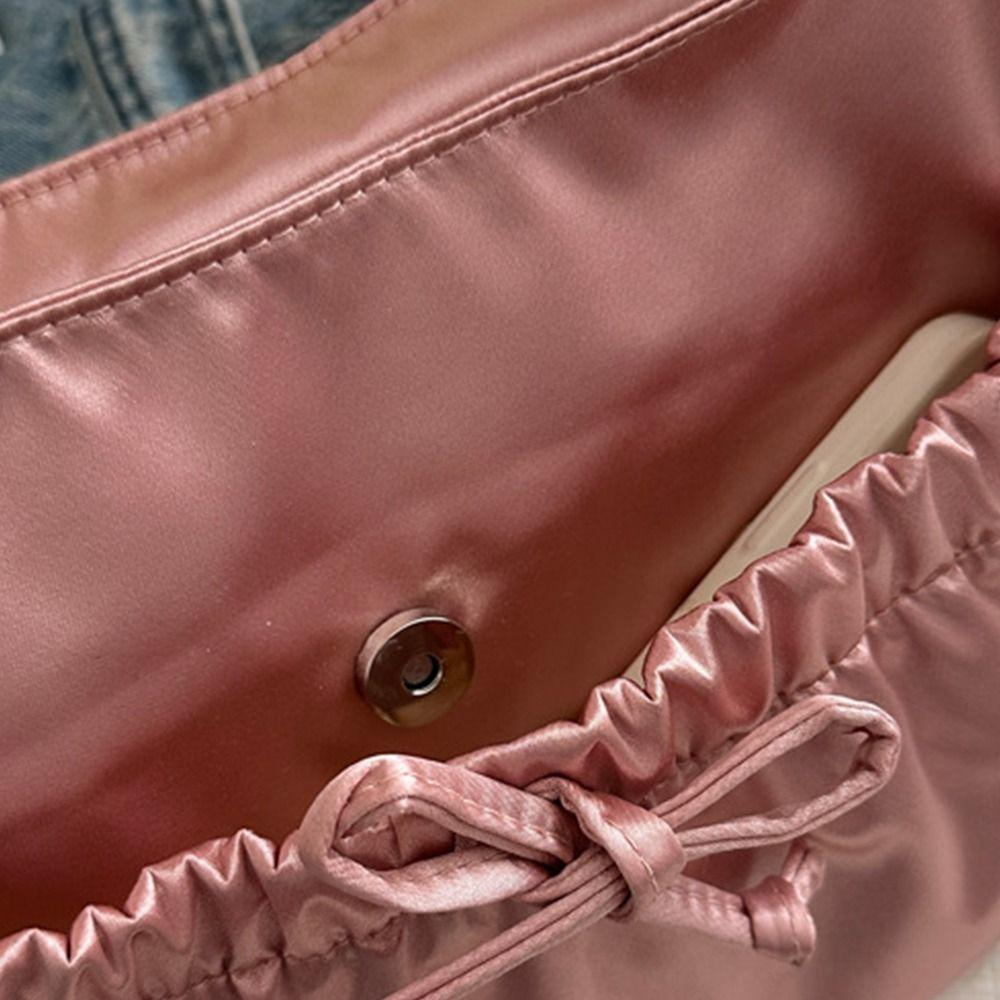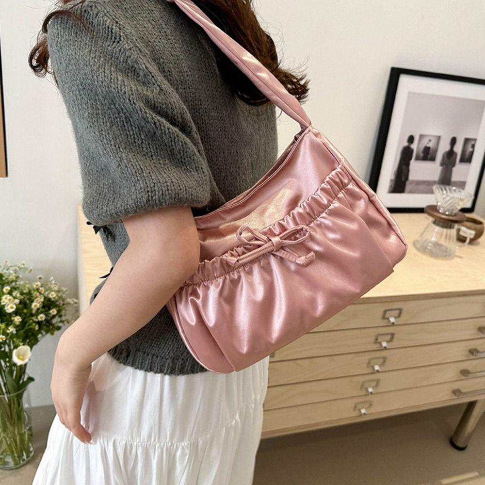 Bow Pleated Hand Bag Satin Fashion Underarm Bag Simple INS Shoulder Bag Travel