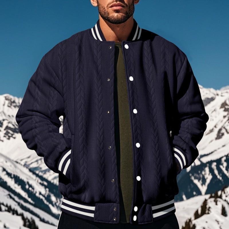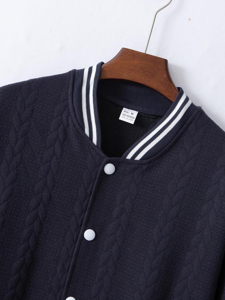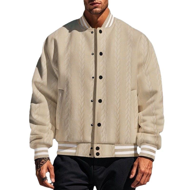 2024 Men's Jacquard Baseball Cardigan – Single-Breasted, Casual Solid Color Jacket for Spring & Autumn