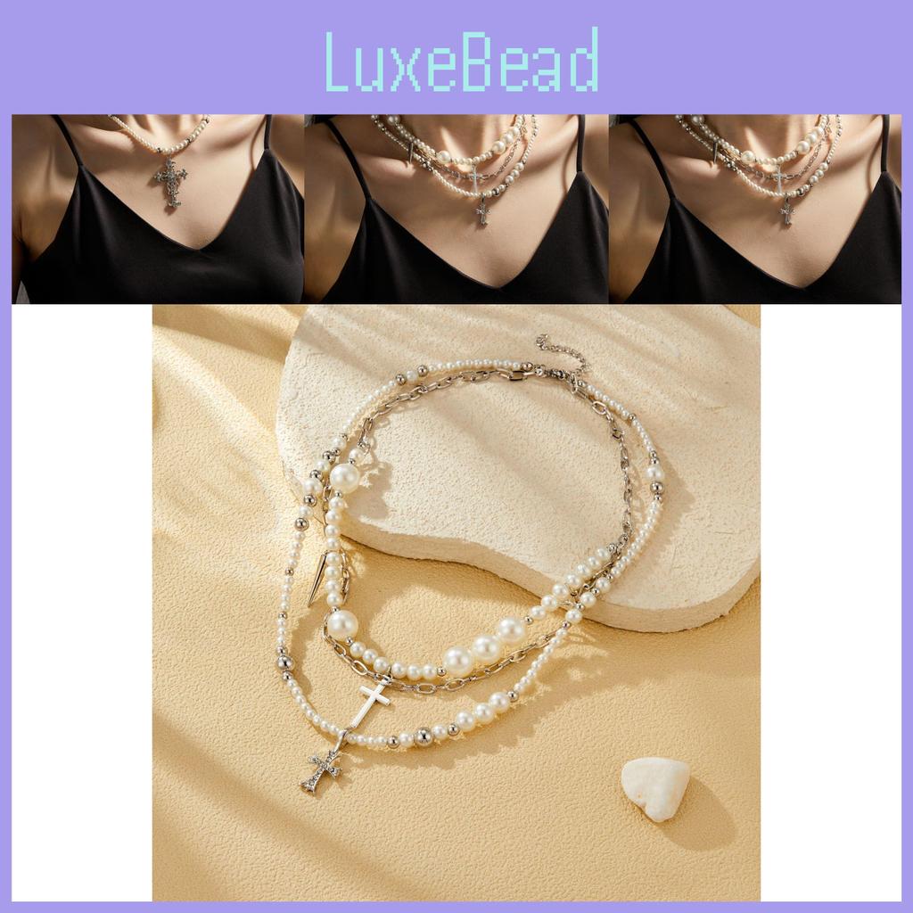 Элегантный дизайн: Роскошное длинное жемчужное колье с крестом отличается изысканным геометрическим дизайном, что делает его выдающимся аксессуаром для любого наряда.