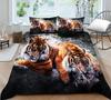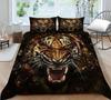 Комплект постельного белья 3D, черный пододеяльник, комплект стеганого одеяла, наволочка, размер King Queen, полиэстер с принтом тигра и животных