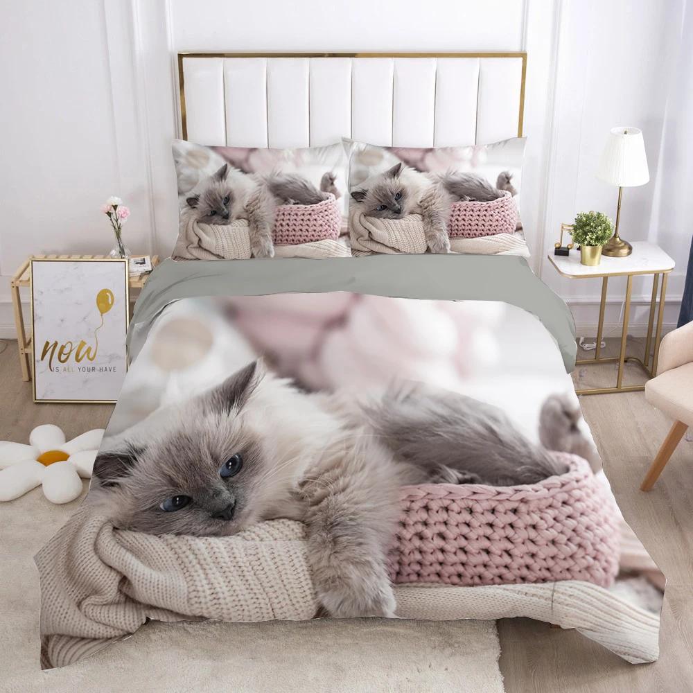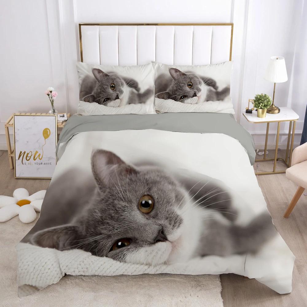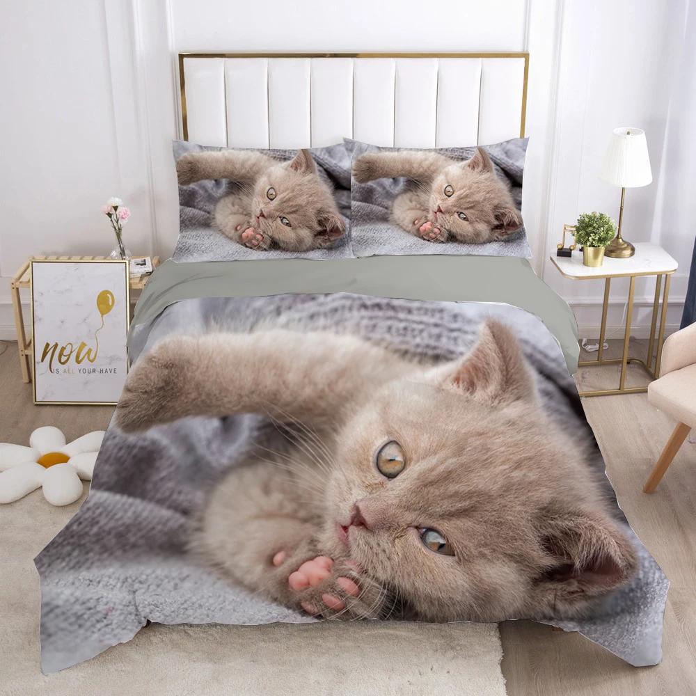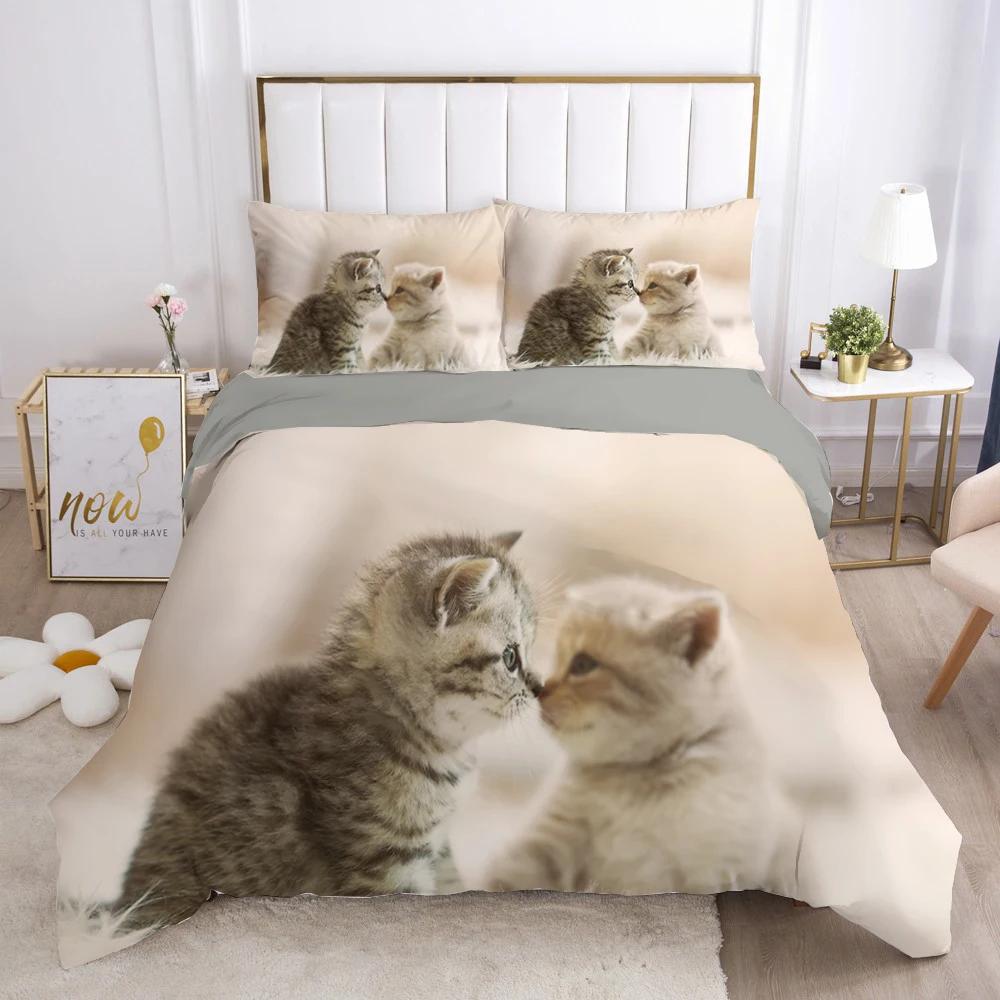 Комплект постельного белья с изображением кота, милого животного, котенка, пододеяльника для детей, подростков, девочек, животных, двуспального размера, размера «king-size», полиэстера, комплект постельного белья