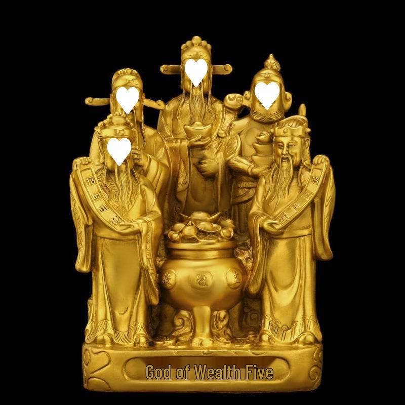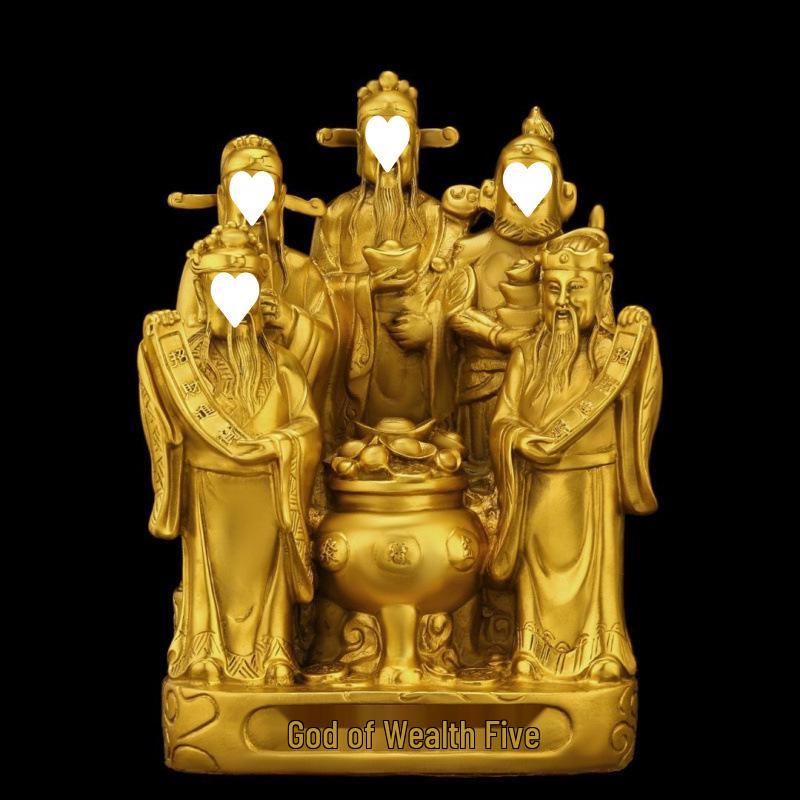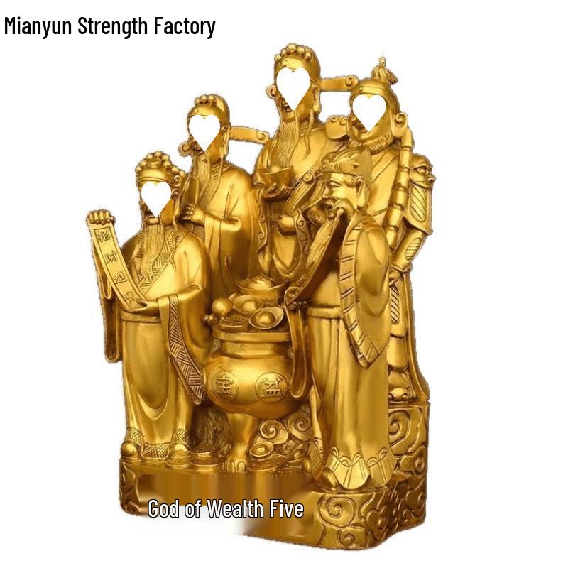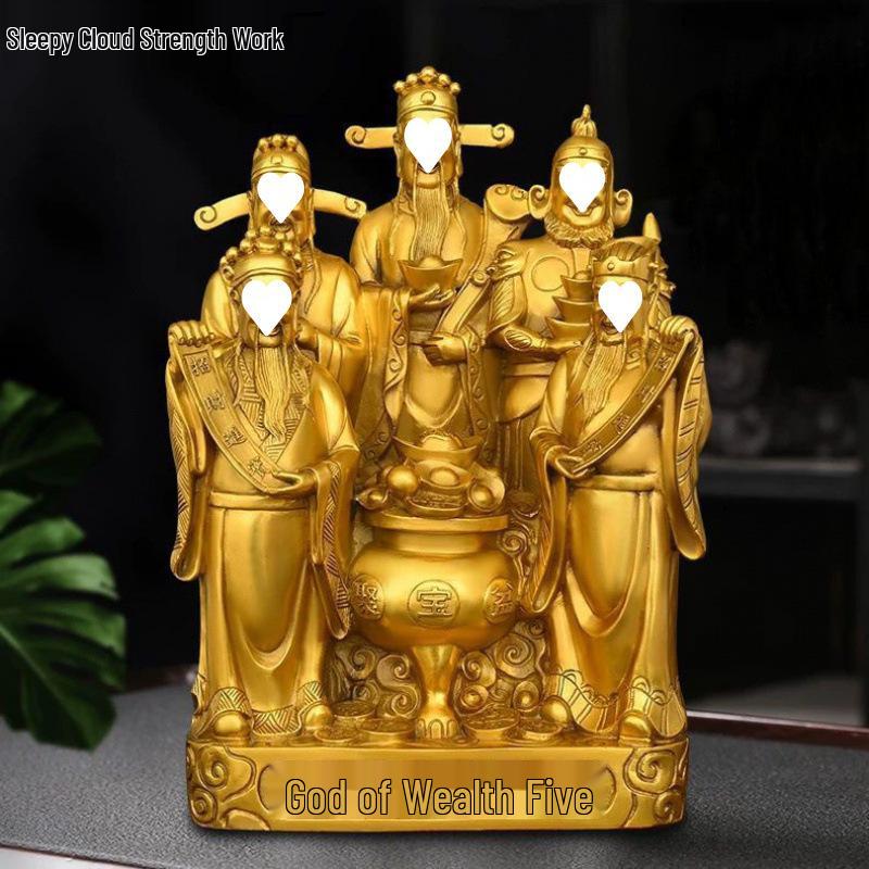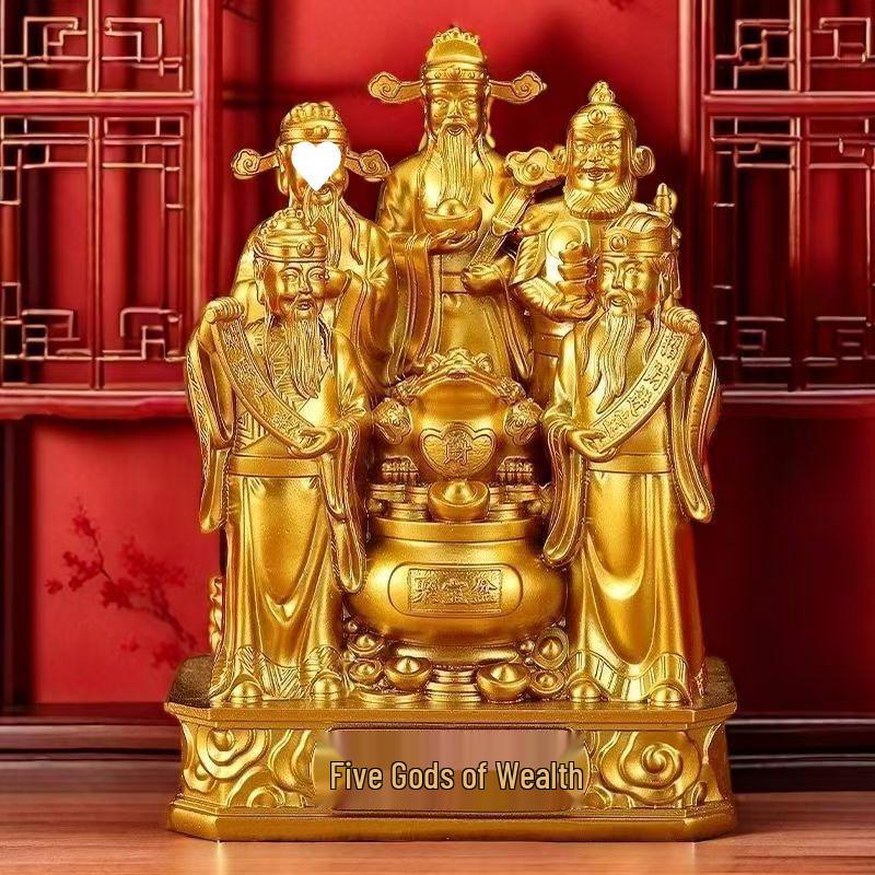 Five Wealth Gods Buddha Statue: Prosperity & Treasure Decoration for Entrance, Hall, or Counter - Ideal Housewarming or Opening Gift