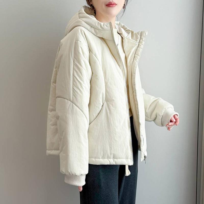 Женская хлопковая куртка на шнурке - 2025 Зимний корейский стиль, Миниатюрная, Повседневная, Приталенная, Толстая, Легкое пальто