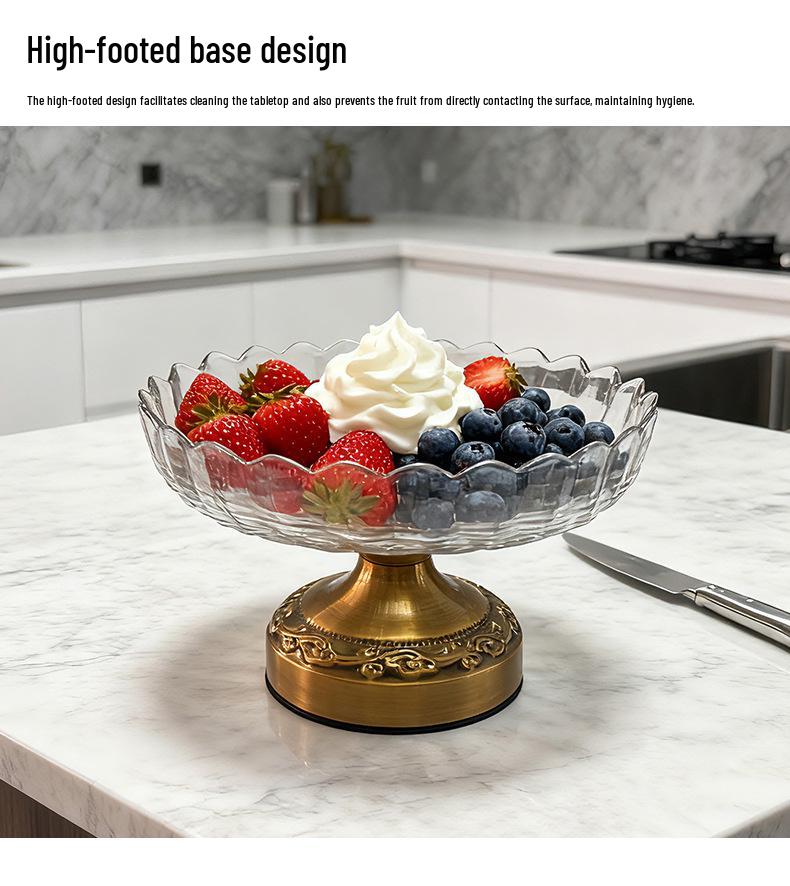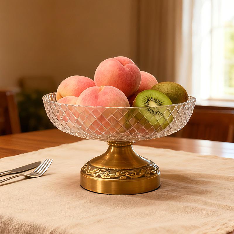 Европейская стеклянная фруктовница на высокой ножке с латунным основанием - Роскошное ретро блюдо для закусок для гостиной