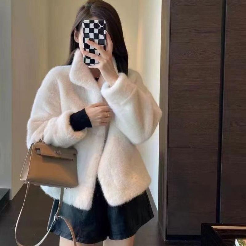 Маленький шерстяной свитер, свободный воротник-стойка, контурная плюшевая куртка, короткая искусственная норка, плюшевое толстое пальто для женщин на осень и зиму