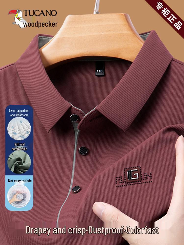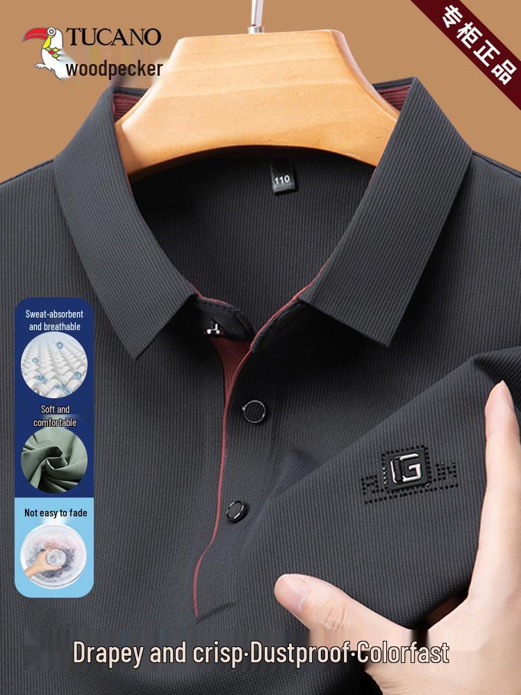 Мужская рубашка поло с длинным рукавом Woodpecker без глажки, бесшовная, с лацканами - универсальная, высокого класса, свободного кроя
