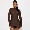 Комплект из сетчатого комбинезона с длинными рукавами и платья на бретелях в европейско-американском стиле 2025 года