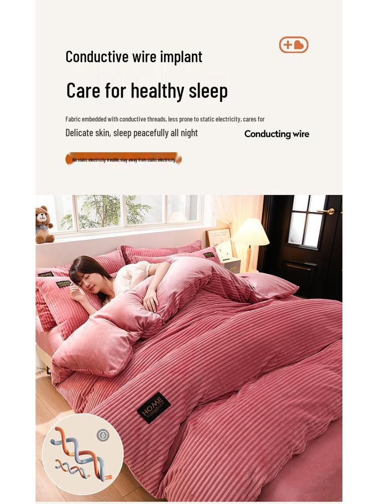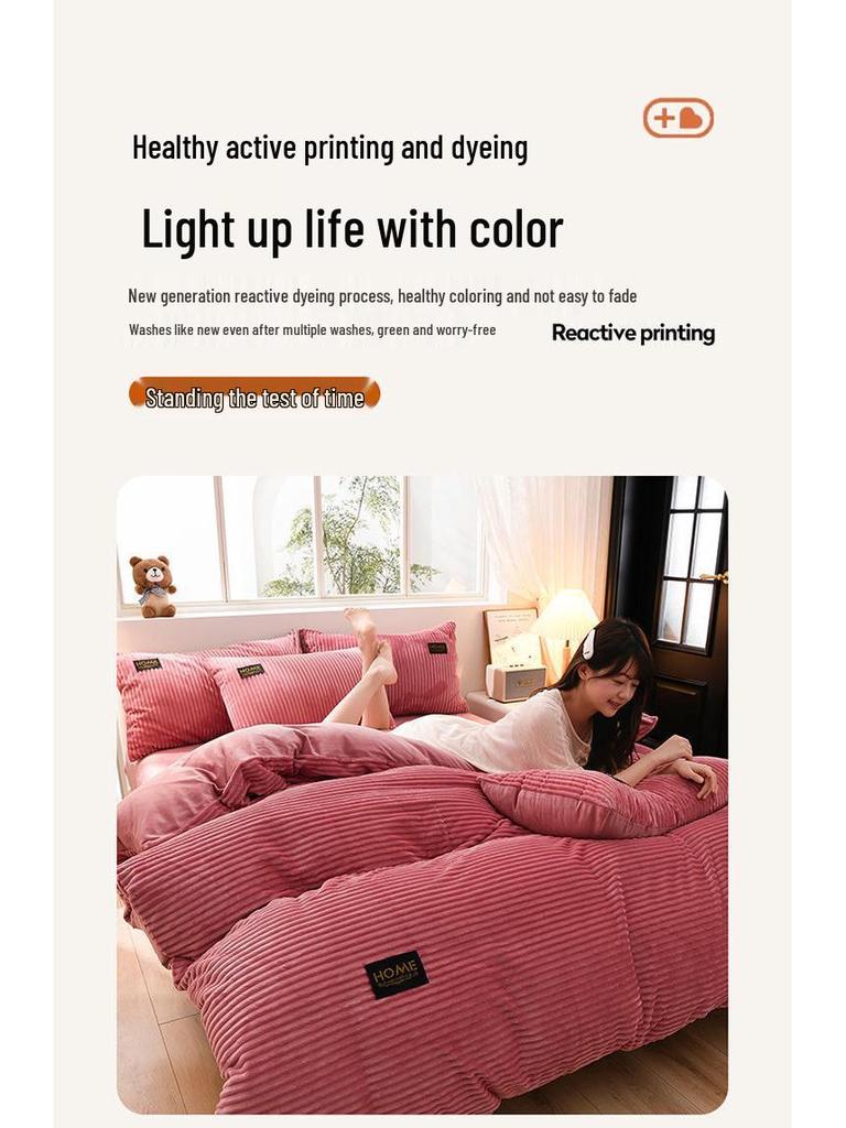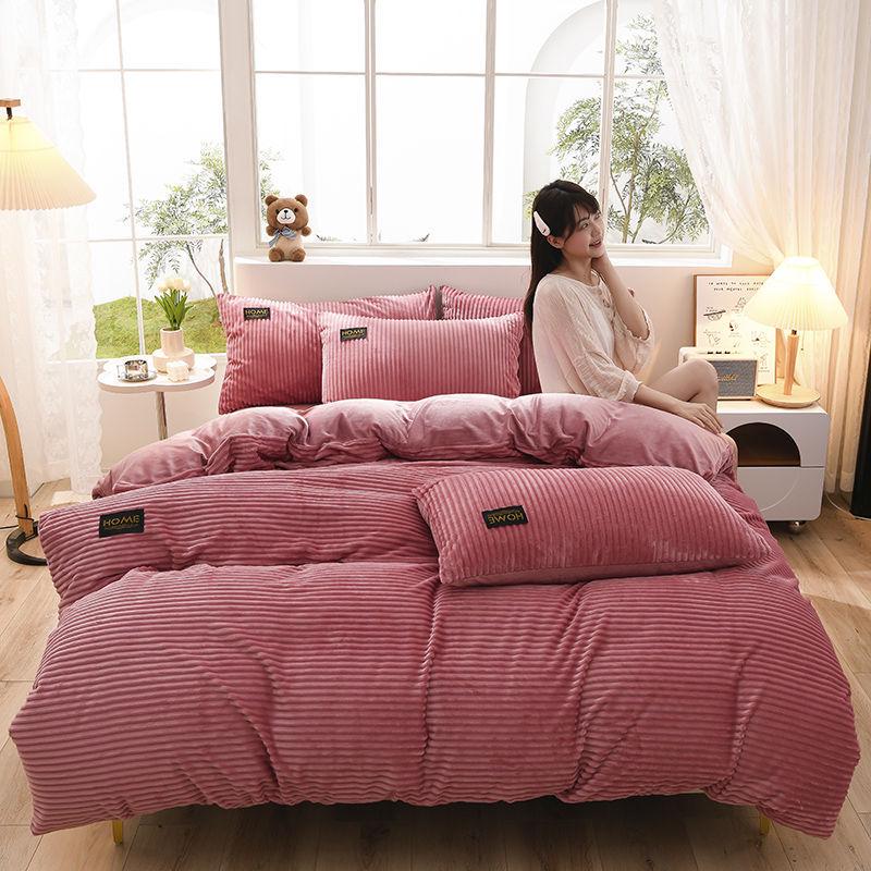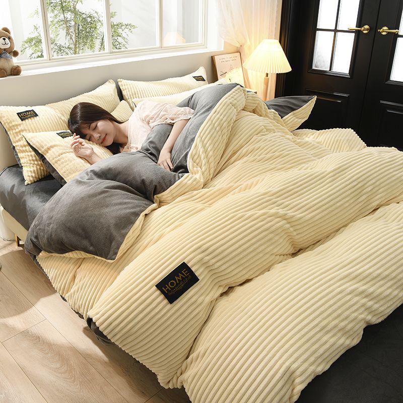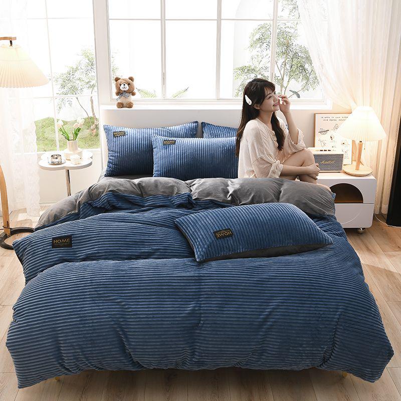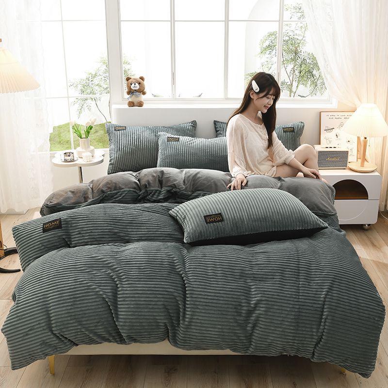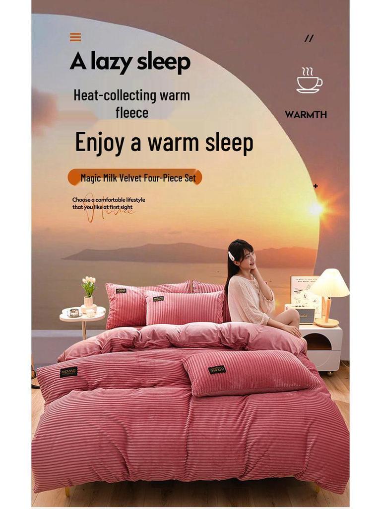 Толстый зимний коралловый флисовый комплект одеяла и простыни - Коллекция бархатного постельного белья из 4 предметов