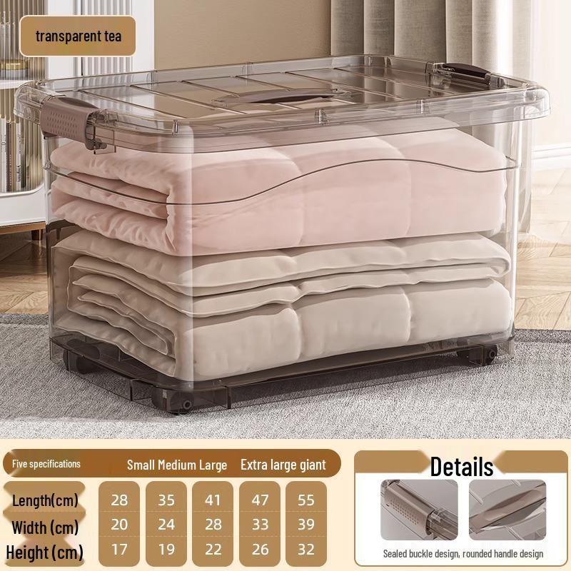 Прозрачный пластиковый ящик для хранения большой вместимости для одежды, книг, закусок и игрушек