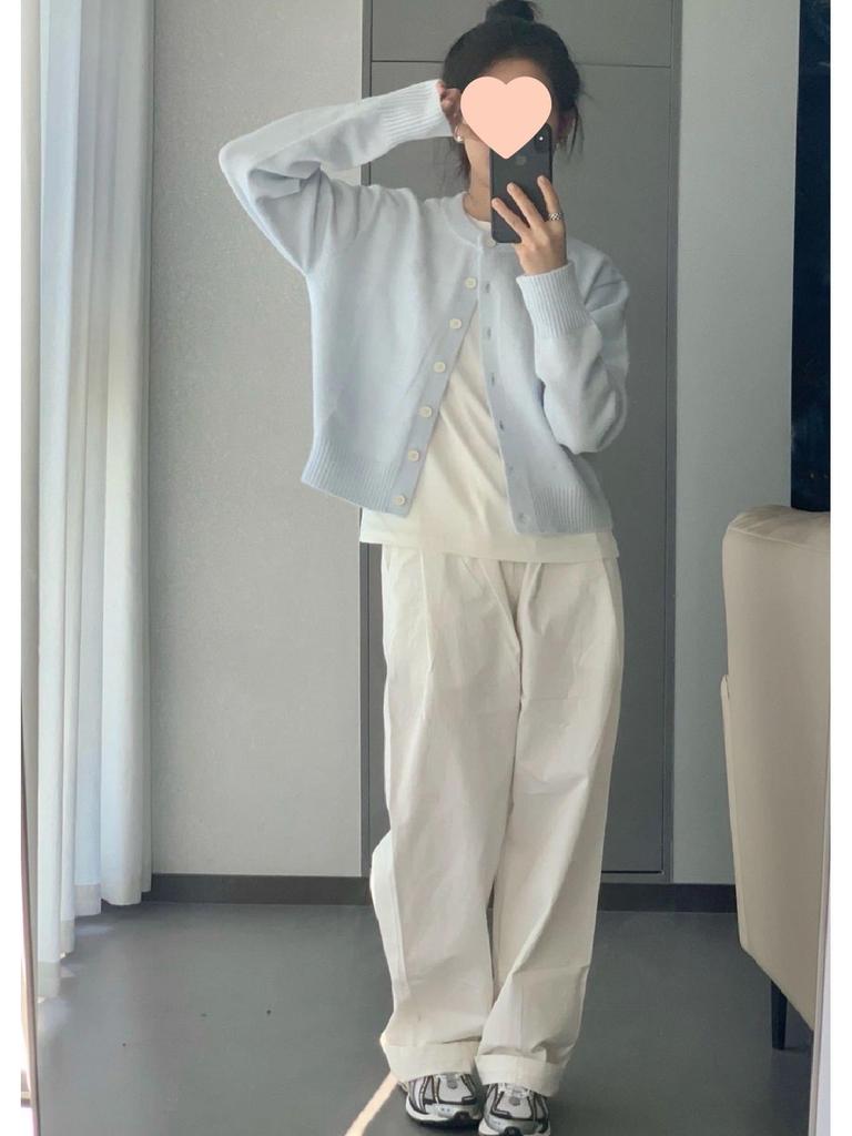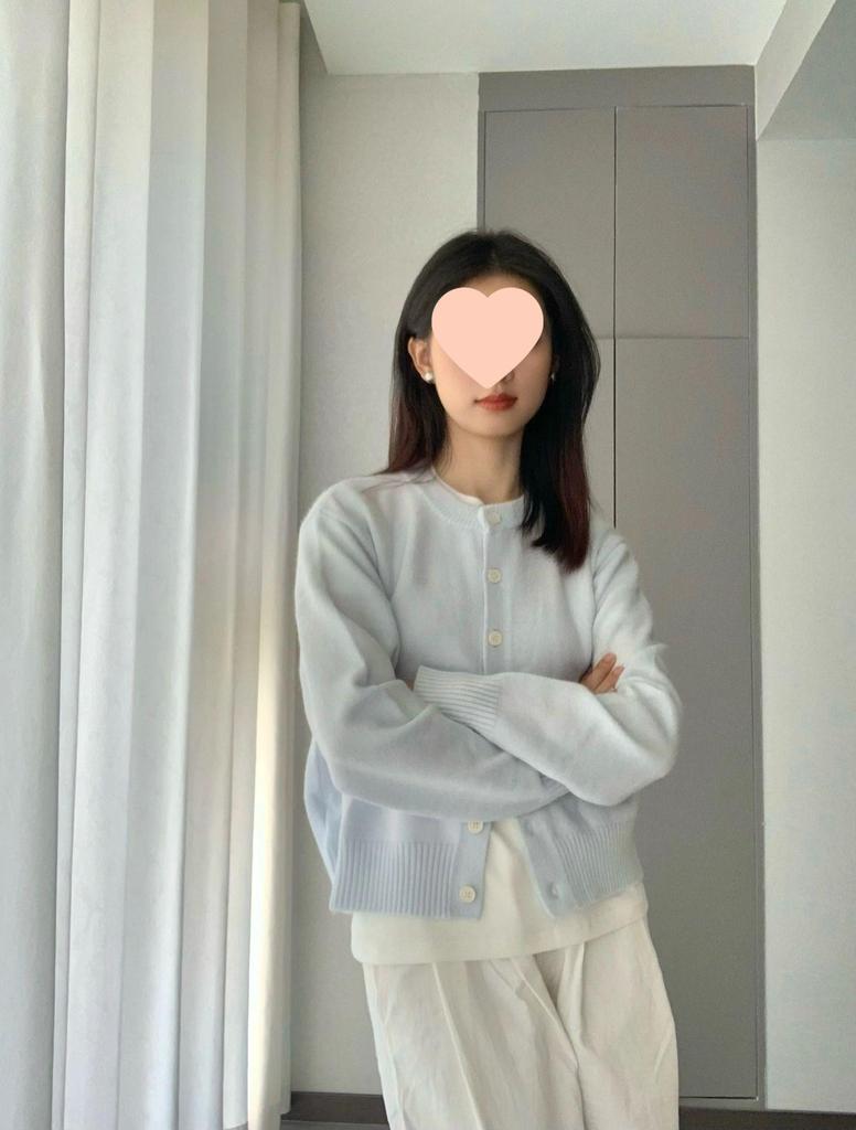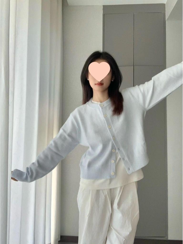 Вязаный кардиган свитер нежно-голубого цвета в корейском стиле для женщин - Простой короткий топ на весну/осень