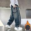 Джинсы на флисовой подкладке для мальчиков Весна-Осень 2025 - Повседневные длинные брюки для детей