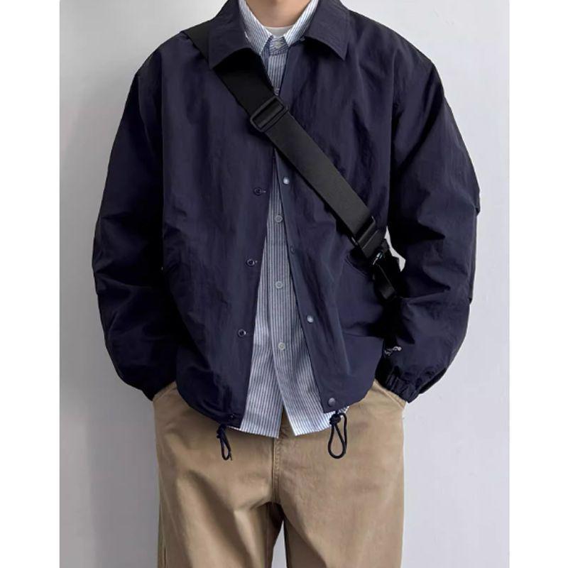 Мужская японская ретро куртка-коуч свободного кроя - отложной воротник, универсальный однотонный цвет, простая рабочая одежда для весны/осени, модный стиль униформы. — купить товар онлайн с бесплатной доставкой до всему миру!