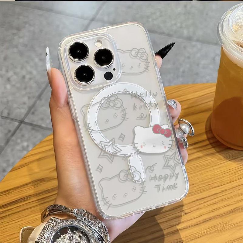 LINE KT Кошка Магнитная Кнопка ИИ Акриловый Чехол для Apple 13/14/15/16 ProMax с Мультяшным Дизайном