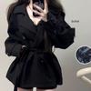 Женский маленький черный двубортный тренч - осенне-зимний стиль с акцентом на талии — купить товар онлайн с бесплатной доставкой по всему миру!