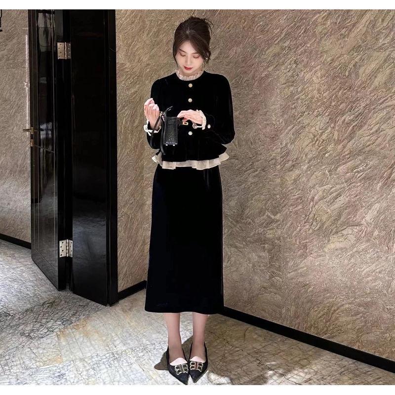 Coco Xi Осень/Зима Кружевной Двухпредметный Стиль Приталенное Маленькое Черное Платье