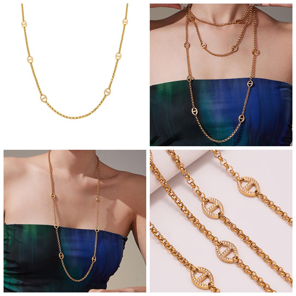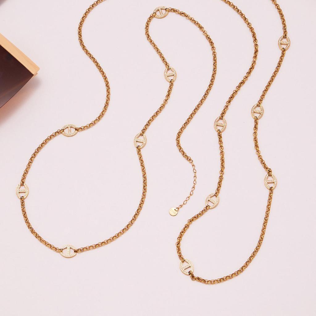 Oumaijia 18-каратное золото с циркониевыми стразами, цепочка-колье