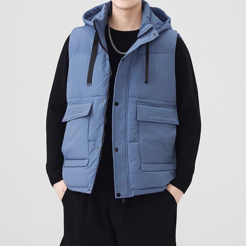 Мужской кардиган без рукавов на пуговицах и молнии, однотонный, с капюшоном, модный, повседневный, свободного кроя, куртка-топ