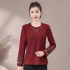Осенне-зимняя базовая рубашка с плюшевой подкладкой, ретро-вышивка в этническом стиле, футболка с круглым вырезом, универсальный и элегантный топ для женщин