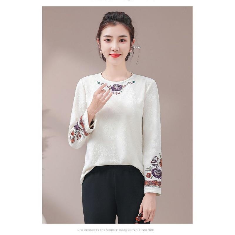 Осенне-зимняя базовая рубашка с плюшевой подкладкой, ретро-вышивка в этническом стиле, футболка с круглым вырезом, универсальный и элегантный топ для женщин — купить товар онлайн с бесплатной доставкой по всему миру!