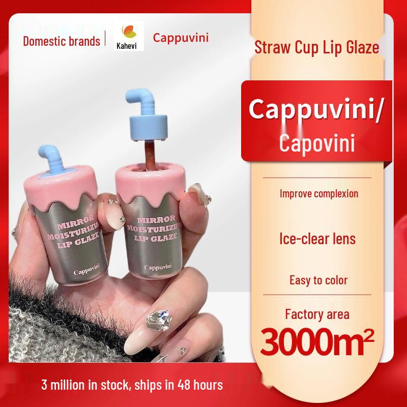 CAPPUVINI Милый стаканчик с трубочкой Блеск для губ: Стойкий, водянистый зеркальный блеск для губ для студентов