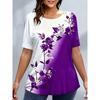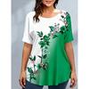 Женские футболки больших размеров XL-7XL Женская футболка с круглым вырезом, модная, с цветочной лоскутной вставкой, цветным принтом, коротким рукавом